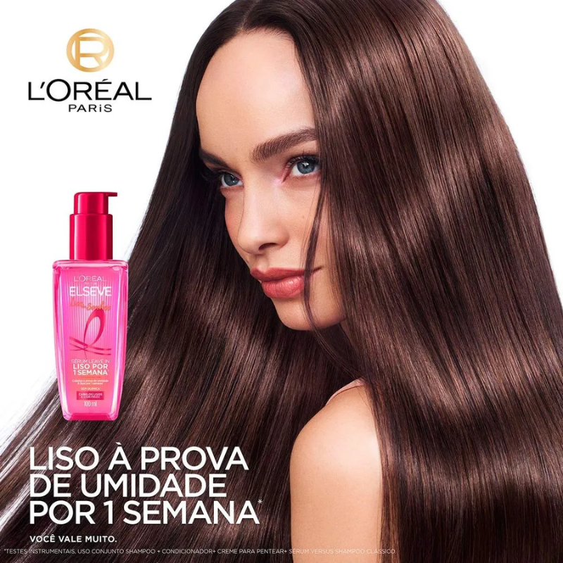 Enriquecido com AHA + queratina vegetal, Elseve liso dos sonhos é o nosso 1º tratamento efeito botox* em casa que transforma o seu cabelo para 1 semana de liso à prova de umidade. *Efeito botox de Elseve cabelos lisos, reparados e sedosos. Com tecnologia ativada por calor, alinha e cria uma barreira invisível na fibra para 1 semana de cabelos lisos e à prova de umidade. Resultados que resistem até 5 lavagens¹. ¹Testes instrumentais, uso conjunto de shampoo, condicionador, creme para pentear e sérum vs shampoo clássico.