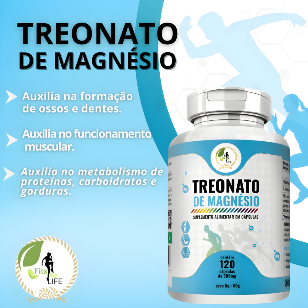 KIT C/2 Treonato de Magnésio 120 Cápsulas - Fits Life Quando o Magnésio é ligado ao aminoácido L-Treonina, forma-se o Magnésio L-Treonato. Essa forma específica de Magnésio é conhecida por sua capacidade de atravessar a barreira hematoencefálica, o que significa que ele pode penetrar no sistema nervoso central com mais facilidade do que outras formas de Magnésio. RECOMENDAÇÃO Idade recomendada: Acima de 19 anos. Sugestão de uso: 02 Cápsulas ao dia / Ingerir com líquidos. Quantidade: 120 Cápsulas. Não contém glúten. Matéria prima importada. Aviso Legal da Anvisa: 1- Não ultrapassar a dose diária recomendada do suplemento. 2- Manter os suplementos fora do alcance de crianças. 3- Esse produto não deve ser consumido por gestantes, lactantes e crianças. Imagens Meramente Ilustrativas/Exemplificativas Produto autorizado para comercialização conforme anexo I da RDC 27/2010 RDC 23/2000 da Anvisa, aut. MS. 6.02234-1
