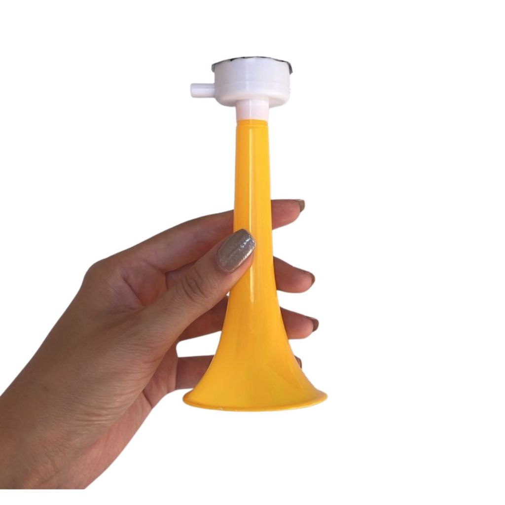 Corneta Copa Futebol Vuvuzela Apito Buzina Copa Brasil A corneta vuvuzela é ideal para animar jogos de futebol, Copa do Mundo, campeonatos, festas e eventos esportivos. Produz um som forte e vibrante, perfeita para torcer e comemorar cada gol com muita animação. Especificações: Altura: 14 cm Largura: 6 cm Quantidade: 24 unidades Características: Som alto e chamativo Leve e fácil de usar Ideal para jogos, festas temáticas e eventos esportivos Produto resistente e reutilizável Garanta a sua e leve mais emoção para a torcida!
