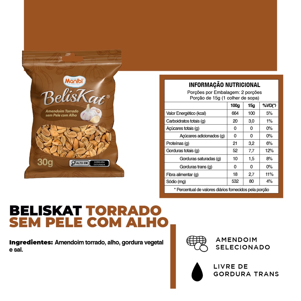 Kit c/ 25 Pacotes Amendoim Torrado Salgado c/ Alho 30g - Pacote com 750g -Beliskat é bom?