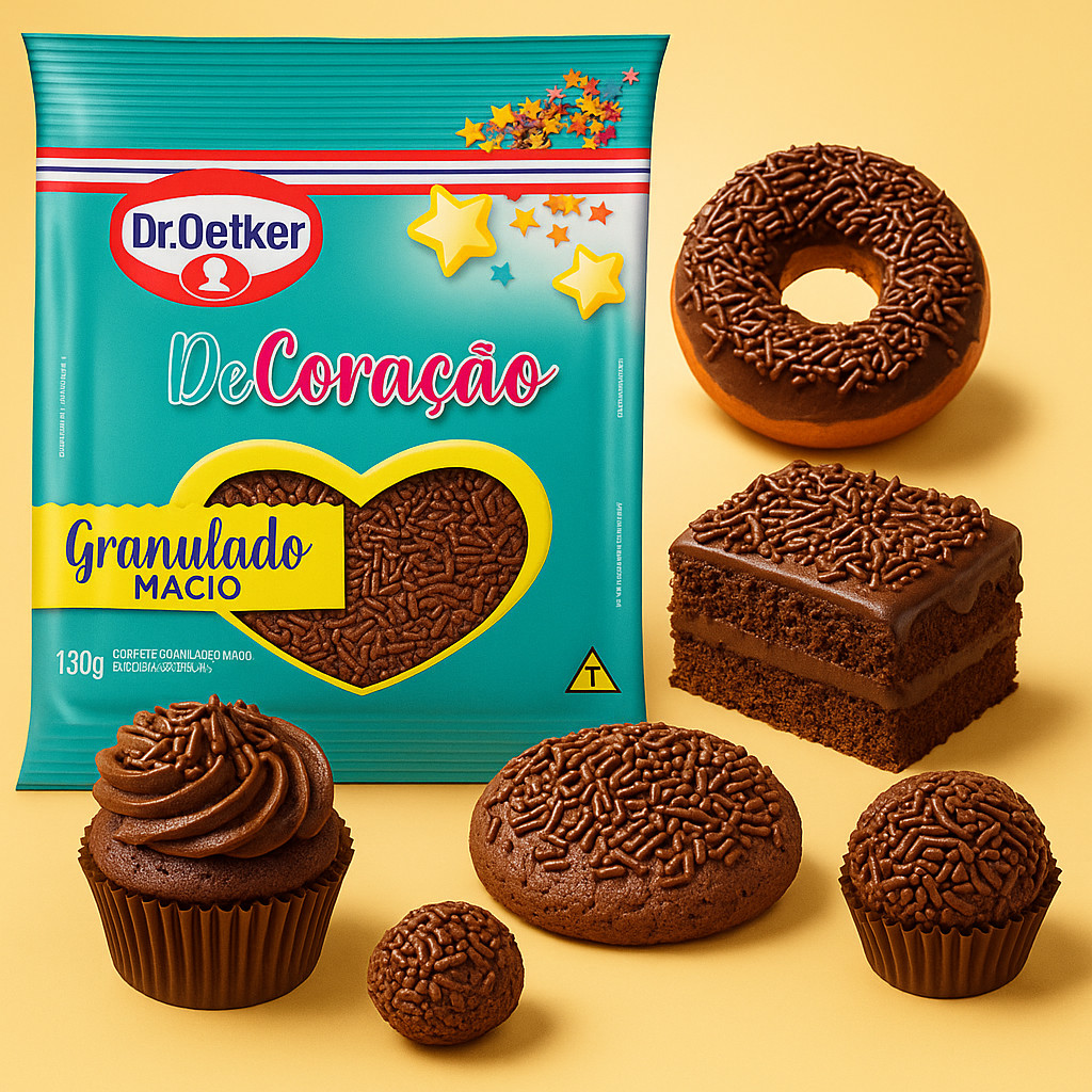 Decore suas Sobremesas com Sabor e Estilo: Granulados Dr. Oetker – 130g - Kit Com 2 unidades - Escolha o Seu Preferido. Adicione um toque especial às suas receitas com os granulados Dr. Oetker. Disponíveis em três versões – Macio, Mesclado e Crocante – esses confeitos são perfeitos para decorar bolos, cupcakes, tortas e outras sobremesas, oferecendo sabor e textura únicos. Conteúdo da Embalagem: - Kit Com 2 unidades de Granulado 130g Cada. (Total 260g) - Escolha Seu Preferido. Granulado Macio – 130g Ideal para quem busca uma textura suave e sabor delicado. Perfeito para cobrir brigadeiros, bolos e outras guloseimas, proporcionando um acabamento clássico e delicioso. Granulado Mesclado – 130g Combinando granulado tradicional com flocos coloridos, essa versão traz um visual vibrante e alegre às suas criações. Excelente para festas infantis e ocasiões especiais, adicionando cor e sabor às sobremesas. Granulado Crocante – 130g Para quem aprecia uma textura mais firme e crocante, essa opção oferece um contraste interessante com o recheio das sobremesas. Ideal para coberturas de bolos e tortas, proporcionando um toque crocante e saboroso. Transforme suas receitas em obras de arte com os granulados Dr. Oetker.