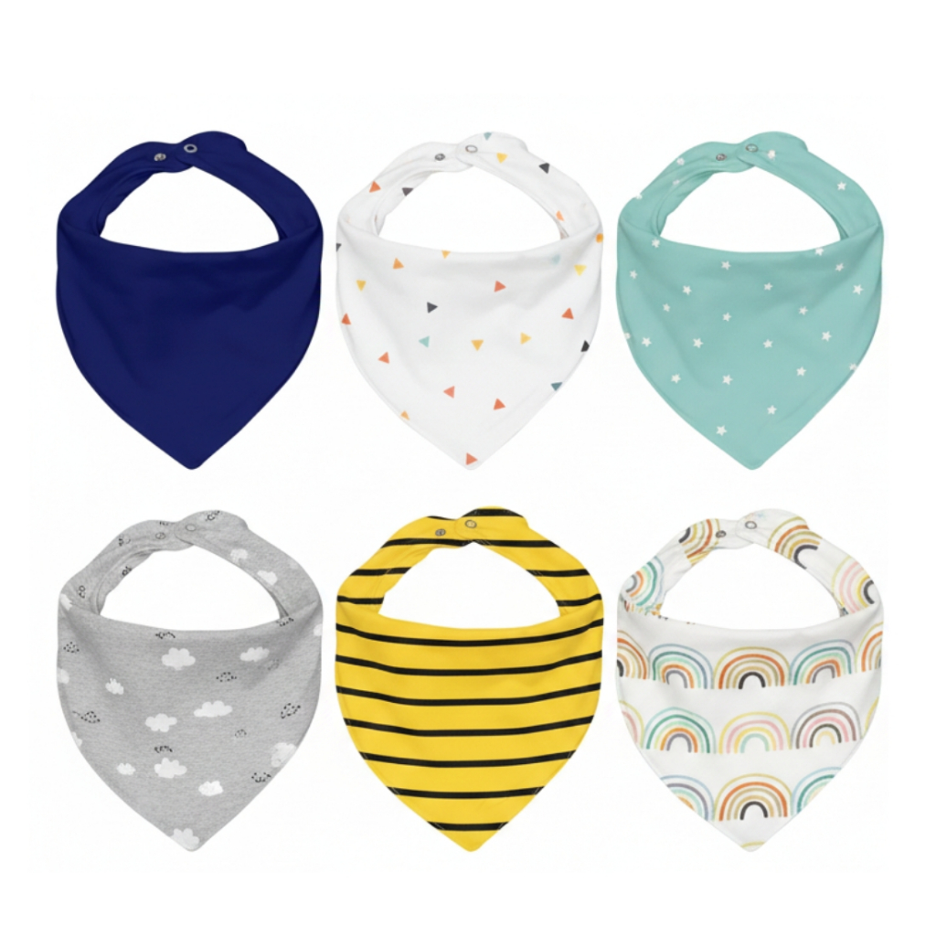 Kit C/3 Babador Bandana de Bebê 100% Algodão 23cm x 18cm - Sortidas