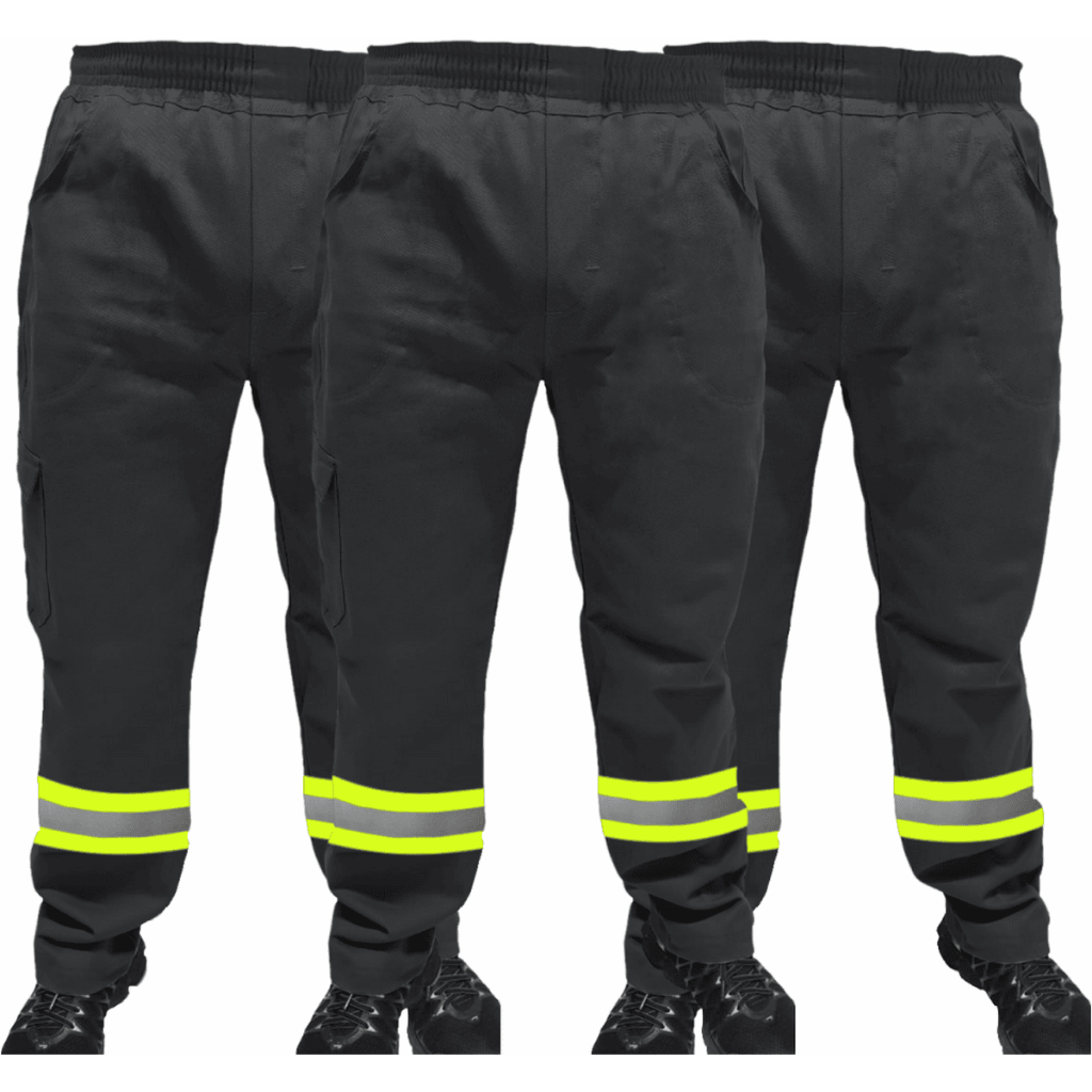 Kit C/ 3 Calça de Uniforme Metalúrgica Brim Profissional Reforçada Com Faixa Refletiva Verde