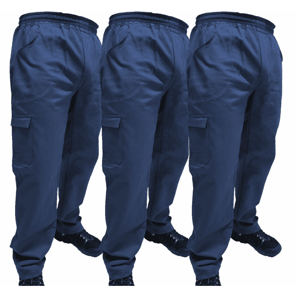 Kit C/ 3 Calça de Uniforme Segurança Brim Profissional Reforçada