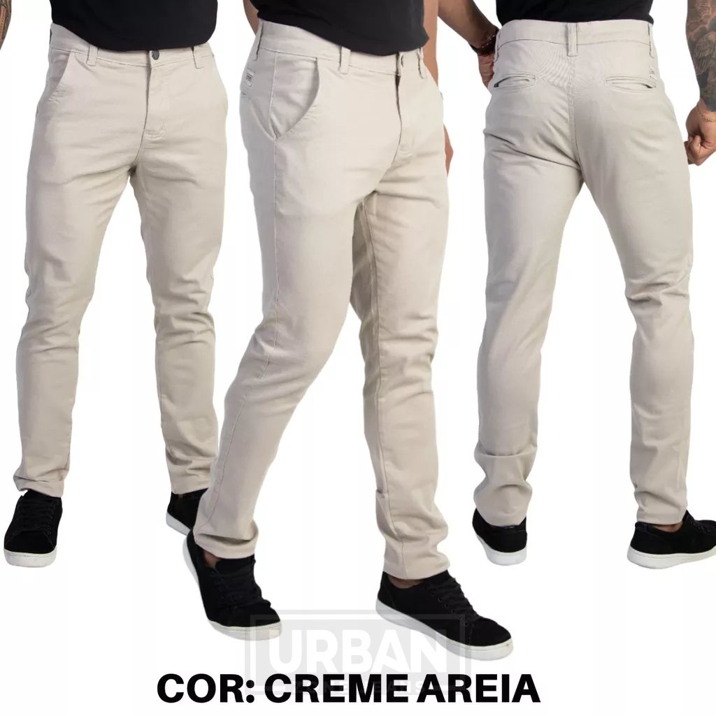 DÚVIDAS FREQUENTES 1) QUANTAS PEÇAS COMPOEM O KIT? RESPOSTA: ESTE KIT É COMPOSTO POR 3 PEÇAS. AS COMBINAÇÕES DE CORES DAS PEÇAS SÃO ESCOLHIDAS PELOS NOSSOS ESTILISTAS, CASO DESEJE UMA COMBINAÇÃO DE CORES DIFERENTE ESCOLHA A OPÇÃO "ENVIAREI AS CORES VIA CHAT", SELECIONE SEU TAMANHO E FINALIZE A COMPRA, EM SEGUIDA NOS MANDE AS CORES QUE DESEJA PELO CHAT. 2) COMO SABER MEU TAMANHO ? RESPOSTA: NO ANÚNCIO, TEM UMA TABELA DE MEDIDAS QUE PODERÁ AUXILIAR NA HORA DA ESCOLHA. 3) QUAL MATERIAL DAS PEÇAS ? RESPOSTA: AS NOSSAS CALÇAS ESPORTE FINO, SÃO COMPOSTAS DE 97% DE ALGODÃO E 3% DE ELASTANO. 4) AS PEÇAS DESBOTAM ? RESPOSTA: NÃO. EM NOSSO PROCESSO PRODUTIVO PREZAMOS POR TECIDOS QUE JÁ SÃO DA COR ORIGINAL. OU SEJA, NÃO MANDAMOS TINGIR AS PEÇAS. PORTANTO, NÃO DESBOTAM. 5) AS CALÇAS ESPORTE FINO TEM ELASTANO ? RESPOSTA: SIM. ELAS TEM 3% DE ELASTANO QUE PROPORCIONA ELASTICIDADE E CONFORTO AO VESTIR. 6) PODEM SER LAVADAS NA MÁQUINA ? RESPOSTA: SIM. SEM PROBLEMA ALGUM. 7) AS PEÇAS PEGAM MUITO PELO ? RESPOSTA: NÃO. NOSSOS TECIDOS SÃO "PELETIZADOS", É UMA TECNOLOGIA QUE PROTEGE O TECIDO DE ACUMULAR AQUELES PELOS INDESEJÁVEIS, OU SEJA, NÃO PEGAM PELOS. 8) A FORMA É NORMAL ? RESPOSTA: NO ANÚNCIO, TEM UMA TABELA DE MEDIDAS QUE PODERÁ AUXILIAR NA HORA DA ESCOLHA. OU PODERÁ ENTRAR EM CONTATO CONOSCO PELO CHAT. 9) QUAL O CORTE DA PEÇA ? RESPOSTA: NOSSO CORTE É SLIM OU SEJA, MAIS AJUSTADA AO CORPO. CASO NÃO GOSTE, RECOMENDAMOS PEGAR UMA NUMERAÇÃO ACIMA. 10) SE COMPRAR E NÃO GOSTAR ? RESPOSTA: CASO COMPRE, E POR ALGUM MOTIVO NÃO GOSTE, PODE FAZER A DEVOLUÇÃO DO PRODUTO SEM PROBLEMA ALGUM, ATÉ 7 DIAS APÓS O RECEBIMENTO DO PRODUTO.