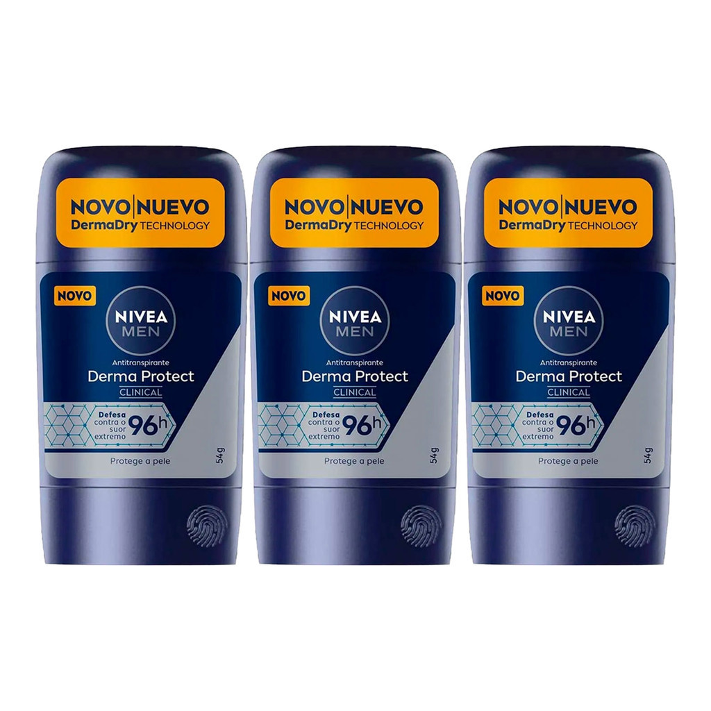 KIT C/3 DESODORANTE NIVEA CLINICAL STICK DERMA PROTECT MASCULINO 54G