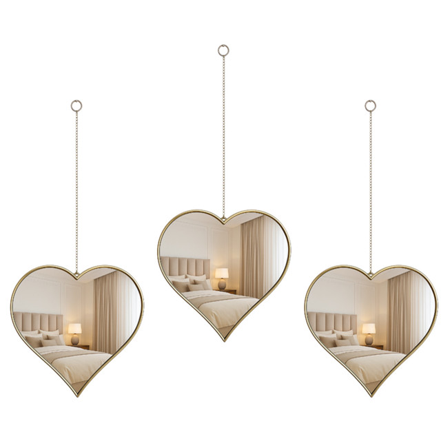Kit C/3 Espelho De Parede Coração Champanhe Sala Quarto Halls