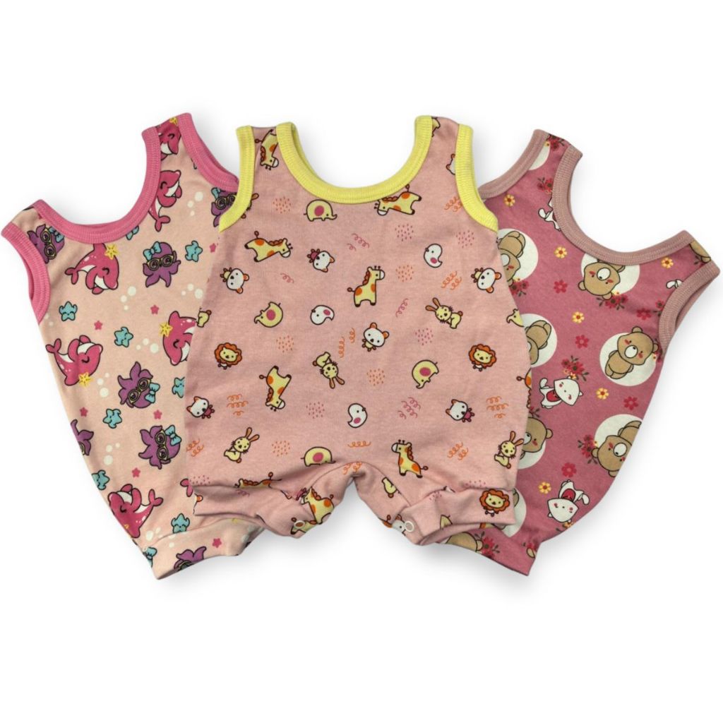 Kit C/3 - Jardineira de Bebe Estampada 100% Algodão Suedine Menina e Menino - Verão