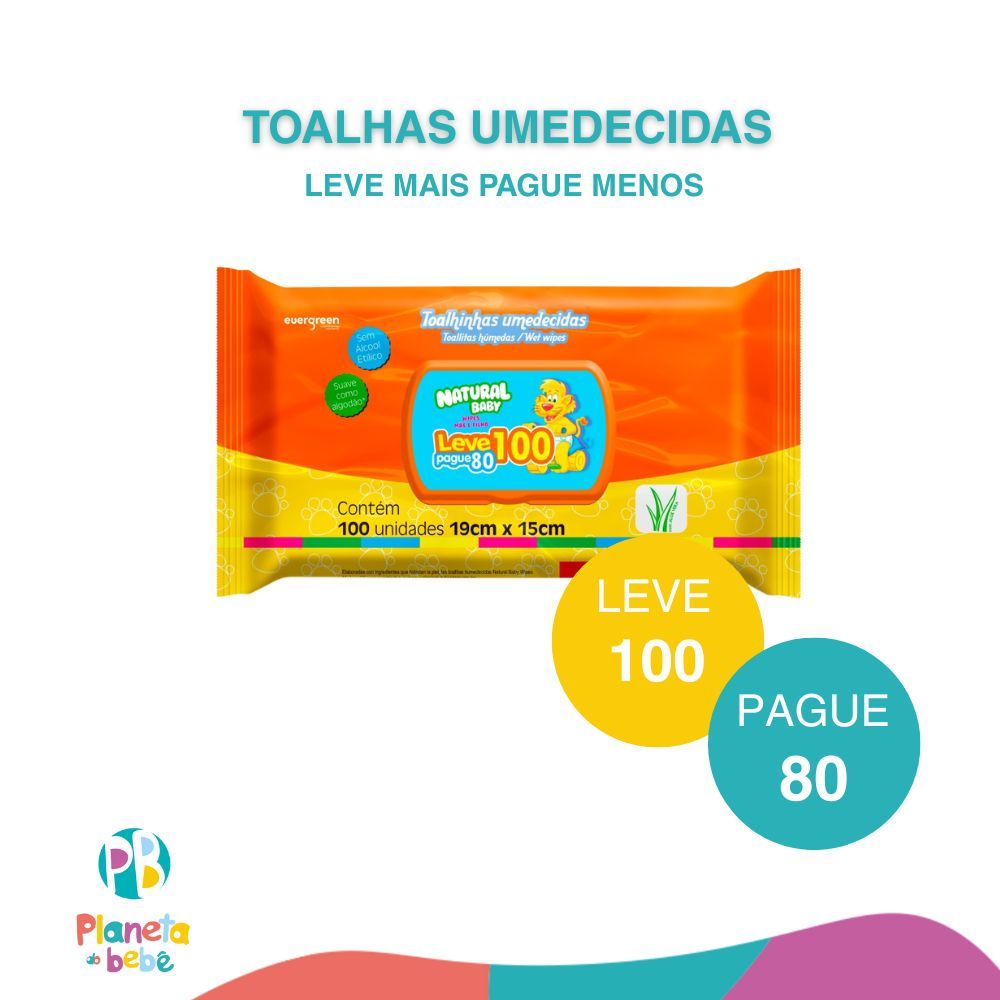 Kit C/ 3 Lenços Umedecidos Natural Baby 100un Cada Evergreen