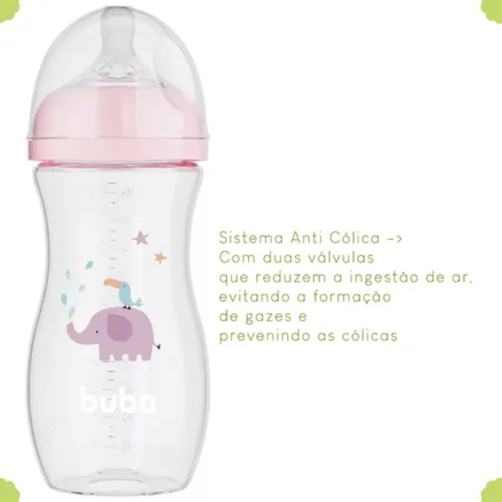 KIT C/ 3 MAMADEIRAS EASY FLOW ELEFANTE ROSA 120ML/270ML/330ML - BUBA
