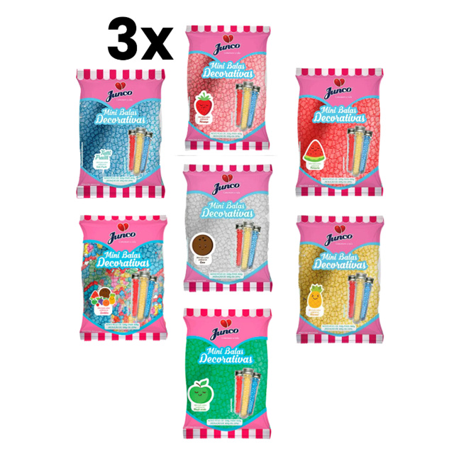 | Kit C/3 Mini Bala Junco 400g Vários Sabores Para Decoração Tubetes ... este produto | R$ 39,98 | 1% | 4.9/5 | 270 |