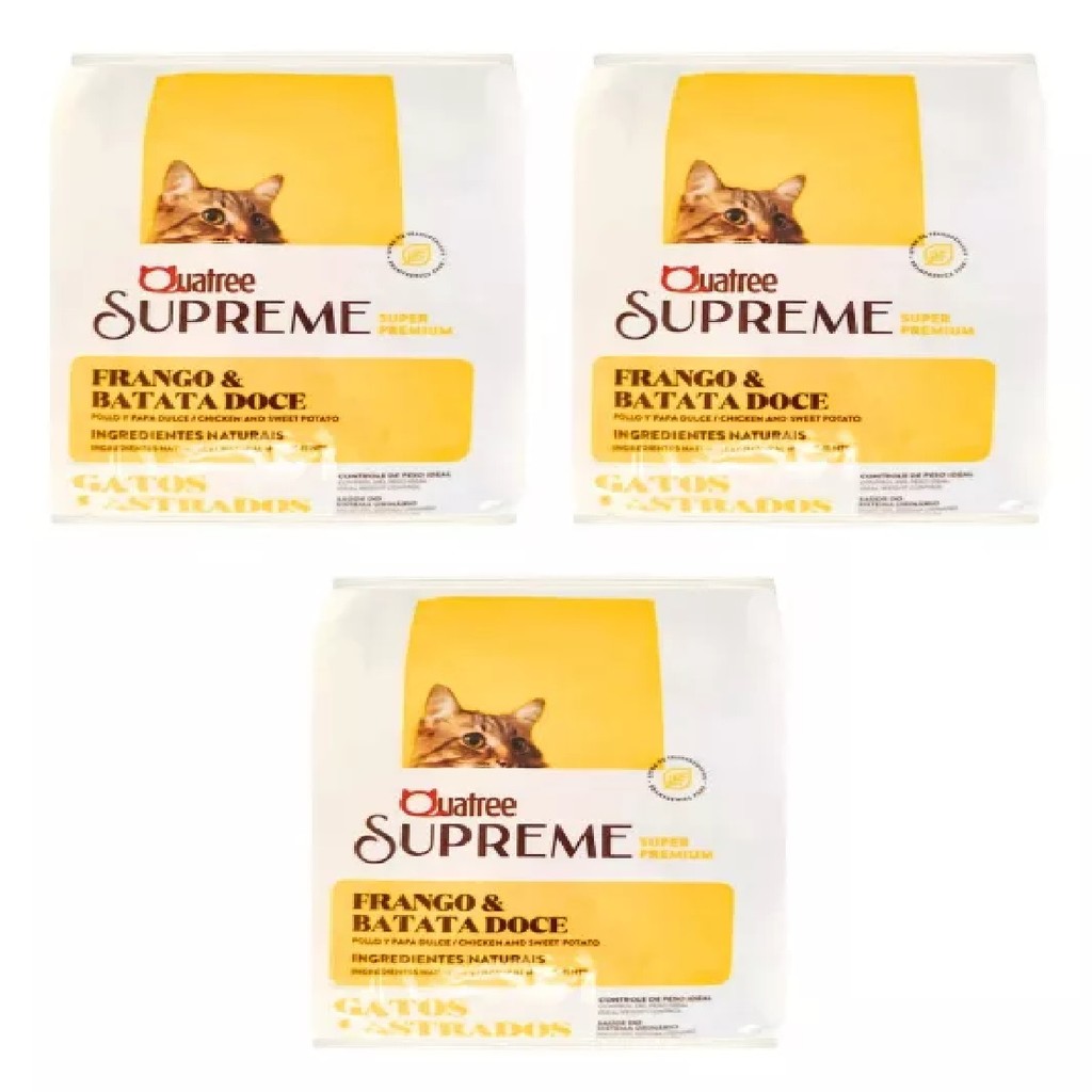 Kit C/ 3 Ração Quatree Supreme Gatos Castrados Frango 1Kg