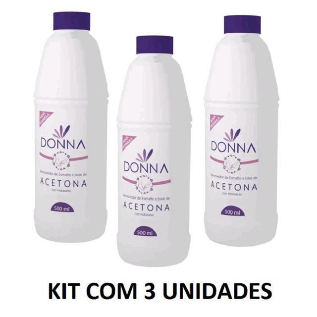 Kit C/3 Removedor de Esmalte á Base de Acetona Donna 500ml