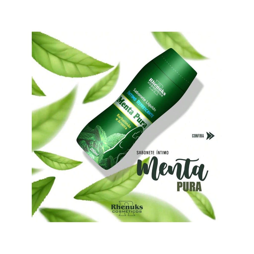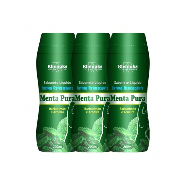 Sabonete Líquido Rhenuks foi desenvolvido especialmente para a higiene feminina e masculina, contém em sua fórmula suave ervas naturais, além de fragrâncias delicadas! MODO DE USO: Aplicar o produto em pequena quantidade, esfregando no orgão ate a formação da espuma, enxágue em seguida ,curta a refrescância e limpeza da Menta Pura, Barbatimão e Aroeira.