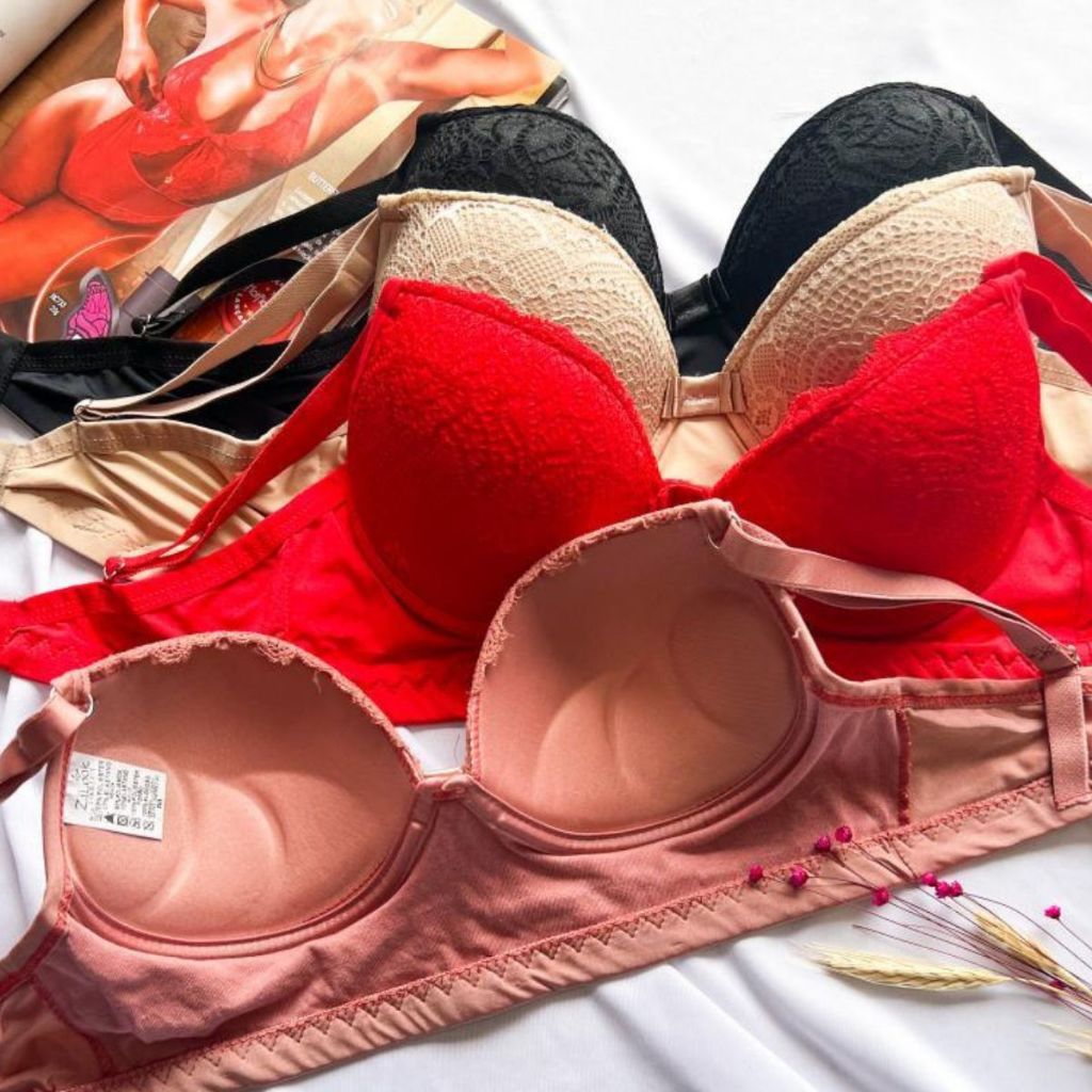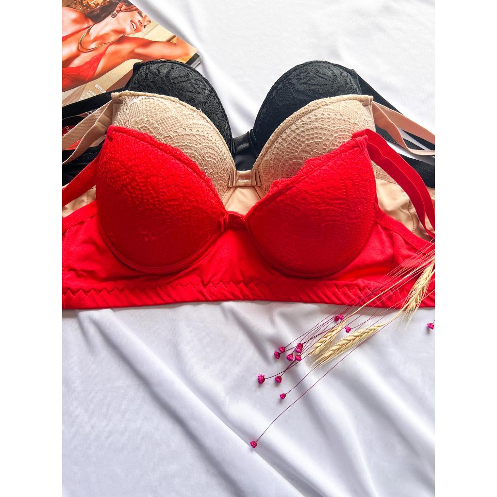 Kit C/ 3 Sutiã Reforçado Básico De Renda Com Bojo Direto Da Fábrica
