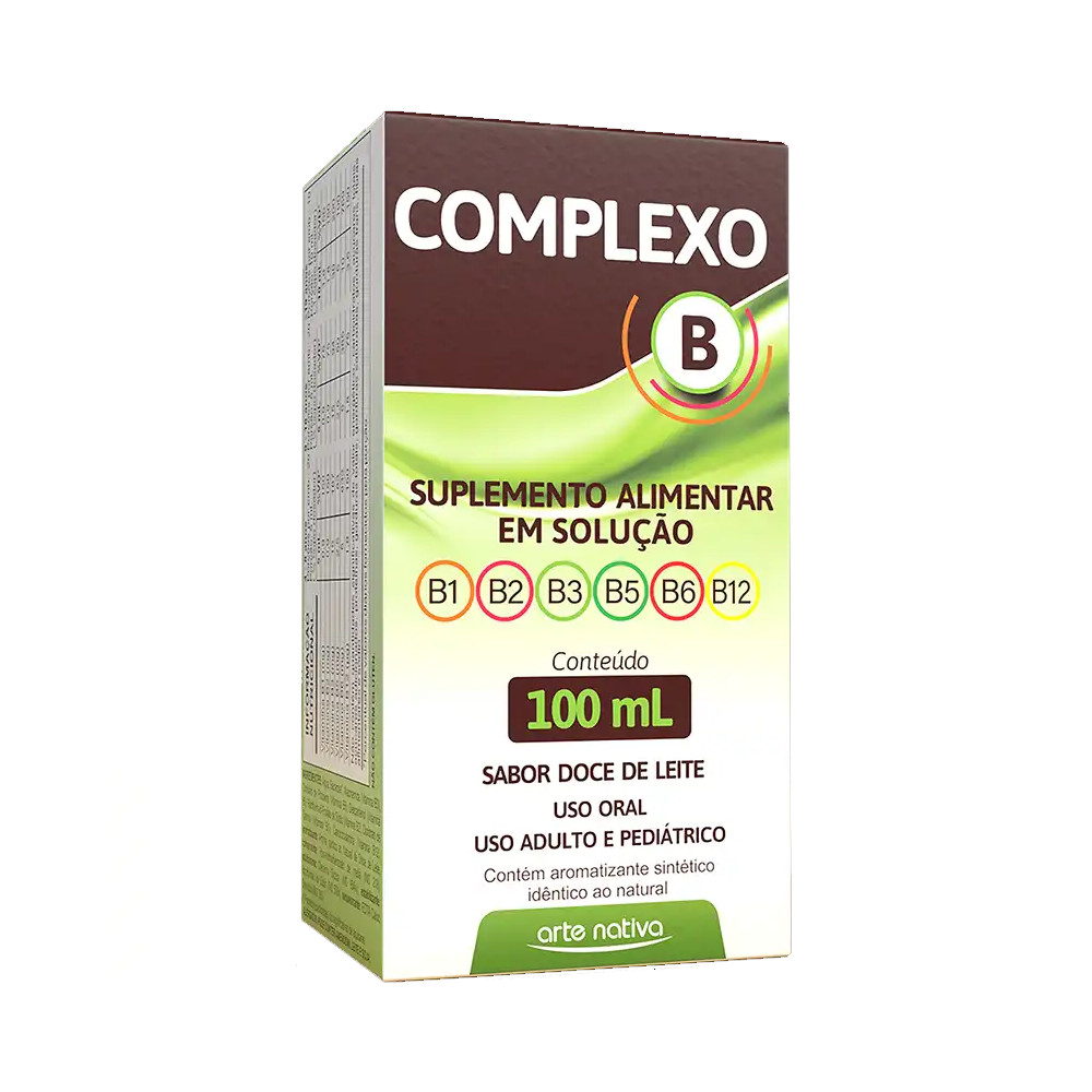 Complexo B Solução 100ml – Arte Nativa é um suplemento vitamínico líquido formulado com um mix completo de vitaminas do complexo B, essenciais para o bom funcionamento do organismo. As vitaminas do complexo B auxiliam no metabolismo energético, contribuem para a saúde do sistema nervoso, fortalecem cabelos, pele e unhas, além de ajudarem na produção de células sanguíneas e no fortalecimento do sistema imunológico. Por ser em forma líquida, a absorção é rápida e eficaz, sendo ideal para quem possui dificuldades de ingestão de cápsulas ou comprimidos. Benefícios: Suporte ao metabolismo energético Auxilia no fortalecimento do sistema imunológico Contribui para a saúde mental e emocional Melhora a saúde da pele, cabelos e unhas Ajuda na formação das células vermelhas do sangue Rápida absorção com fórmula líquida Ideal para todas as idades (uso adulto, conforme orientação) Modo de uso: Ingerir de acordo com a dose recomendada pelo fabricante ou conforme orientação de médico ou nutricionista. Agite antes de usar. Advertências: Uso oral. Manter fora do alcance de crianças. Em caso de reações adversas, suspenda o uso e procure orientação médica. Conservar em local fresco, seco e ao abrigo da luz. Este produto não é um medicamento. Não exceder a recomendação diária de consumo.
