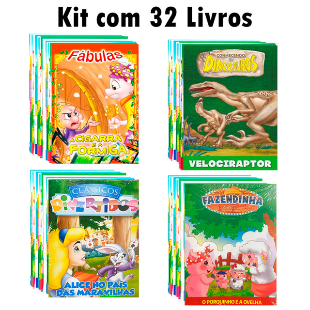 | Kit c/ 32 livrinhos para crianças - Fábulas + Dinossauros + Clássic... este produto | R$ 38,30 | — | 5.0/5 | — |
