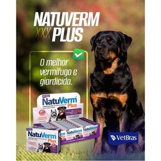 Kit C/ 4 Caixas Vermifugo Oral Vermicida E Giardicida Natu Verm Plus 1650mg Cães ou Gatos 2 Comp. Sabor Carne
