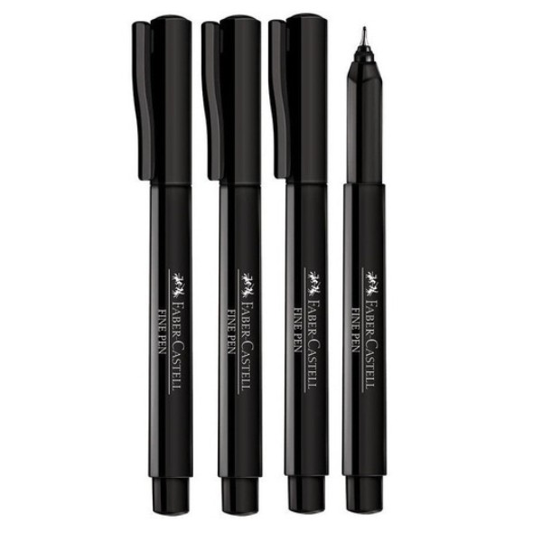 Kit C/4 Caneta Fine Pen Preta 0,4mm Ponta Fina Faber