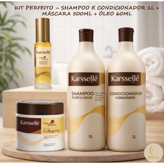 ✨ KIT C/ 4 ITENS – SHAMPOO + CONDICIONADOR + MÁSCARA + ÓLEO DE 60ML - Karssellé ✨