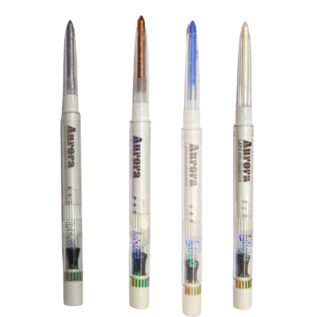 Kit C/4 Lápis Holográfico 1 Violeta 1 Lunar 1 Ametista 1 Bronze Luisance