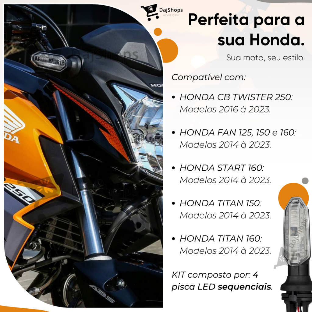Kit C/ 4 Pisca Led Seta Honda Cb250f Twister 2019 Fan Titan