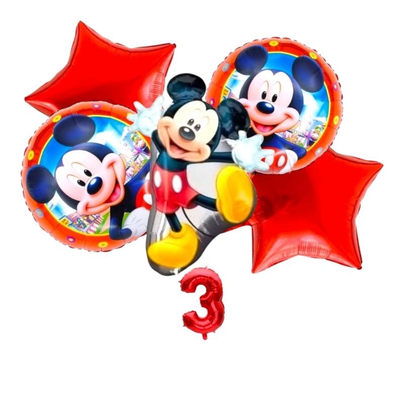 Kit c/5/6 balões Mickey corpo mede 55 cm/redondo/estrela mede 45 cm/número mede 40 cm