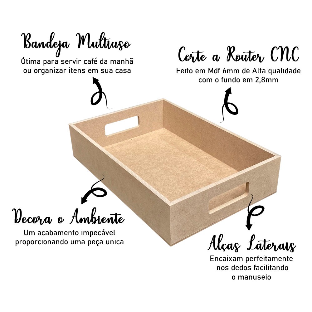 Adicione um toque de requinte e funcionalidade à sua casa com nossa deslumbrante bandeja retangular com alça, feita em MDF de alta qualidade! Feita com precisão e atenção aos detalhes, nossa bandeja combina elegância e durabilidade em uma peça única, perfeita para complementar sua decoração e facilitar o serviço de seus convidados. -Características principais: Construção robusta em MDF que oferece resistência e estabilidade. Design retangular clássico e sofisticado que se adapta a qualquer ambiente. Alça ergonômica e confortável para transporte fácil e seguro. Acabamento impecável que proporciona um toque de luxo à sua experiência de servir. Esta bandeja é ideal para uma variedade de usos, desde servir café da manhã na cama até organizar itens decorativos em sua sala de estar ou home office. Sua versatilidade e elegância a tornam um complemento indispensável para qualquer espaço. Surpreenda seus entes queridos com este presente único e funcional, ou acrescente um toque de classe aos seus momentos especiais do dia a dia! - Medidas: - Comprimento: 35cm - Largura: 25cm - Altura: 6cm - Caso tenha qualquer dúvida fique a vontade para perguntar, estamos à disposição para lhe atender.