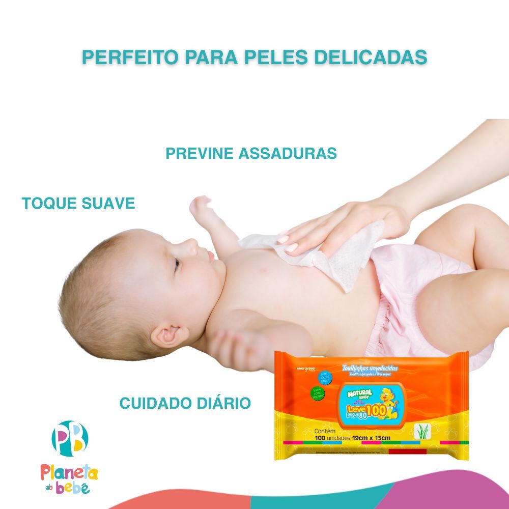 Kit C/ 5 Lenços Umedecidos Natural Baby 100un Cada Evergreen