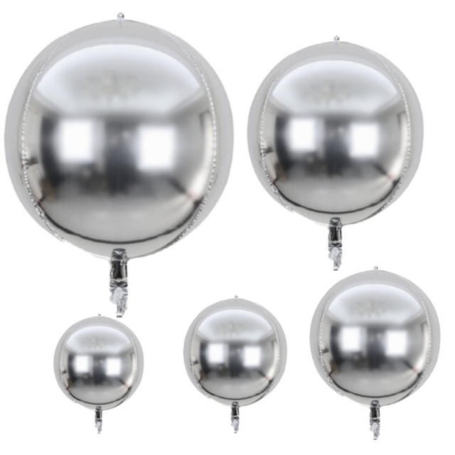 Kit c/ 5 Orbz 4D Balões Prata Metalizado Grande Decoração Festa Globo 10" 15" 18" 22" 32"