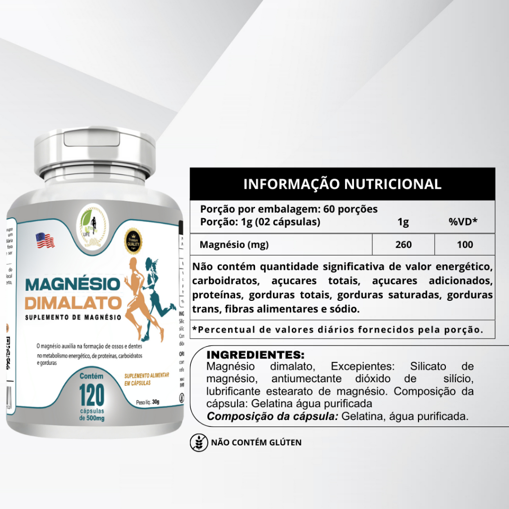 Magnésio Dimalato Fits Life - 120 Cápsulas (260mg por porção) O Magnésio Dimalato Fits Life é um suplemento de alta qualidade que combina as propriedades do magnésio com o ácido málico, promovendo uma absorção eficiente e potencializando os benefícios desse mineral essencial para o nosso organismo. Com 120 cápsulas, cada porção contém 260mg de magnésio dimalato, oferecendo uma dose ideal para o seu dia a dia. Benefícios: - Saúde Muscular: O magnésio é fundamental para o bom funcionamento dos músculos, ajudando a prevenir cãibras e melhorar a performance durante atividades físicas. - Equilíbrio Energético: O ácido málico presente na fórmula auxilia na produção de energia, contribuindo para a redução da fadiga e aumento da disposição. - Suporte ao Sistema Nervoso: Este mineral é conhecido por ajudar a regular a função nervosa, promovendo um estado de relaxamento e bem-estar. - Saúde Óssea: O magnésio desempenha um papel crucial na formação e manutenção de ossos saudáveis. Modo de Uso: Para aproveitar todos os benefícios do Magnésio Dimalato Fits Life, recomenda-se a ingestão de 2 cápsulas ao dia, preferencialmente junto com uma refeição, para melhor absorção. Composição: Cada porção contém 260mg de magnésio dimalato. A fórmula é livre de glúten, lactose e aditivos artificiais, garantindo um produto saudável e de qualidade. Público-Alvo: Indicado para pessoas que buscam melhorar sua saúde muscular, aumentar os níveis de energia e manter o equilíbrio do sistema nervoso, o Magnésio Dimalato Fits Life é ideal para atletas, praticantes de atividade física e qualquer pessoa que queira promover um estilo de vida saudável. Experimente o Magnésio Dimalato Fits Life e sinta a diferença na sua qualidade de vida! Nota de Esclarecimento Informamos que houve um erro de rotulagem em alguns de nossos produtos: (Magnésio Dimalato 120 cápsulas). A quantidade correta por porção é de 260 mg, e não 260 mcg como foi mencionado em alguns rótulos. Pedimos desculpas pela confusão e agradecemos pela compreensão. Atenciosamente, Fits Life RECOMENDAÇÃO* Idade recomendada: acima de 18 anos *Sugestão de uso: 2 Cápsulas ao dia / Ingerir com líquidos. Quantidade: 120 cápsulas por pote Avisos Legais da Anvisa: 1- Não ultrapassar a dose diária recomendada do suplemento. 2- Manter os suplementos fora do alcance de crianças. 3- Esse produto não deve ser consumido por gestantes, lactantes e crianças. Imagens Meramente Ilustrativas/ Exemplificativas Produto autorizado para comercialização conforme anexo I da RDC 27/2010 RDC 23/2000 RDC 240/2018 da Anvisa, aut. MS. 6.02234-1