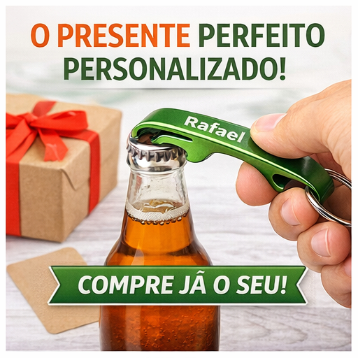 ✨ CHAVEIRO ABRIDOR PERSONALIZADO 🎁 Como comprar: Clique em comprar Envie o nome no chat Produzimos e enviamos rápido 🚀 Garanta já o seu! Após finalizar sua compra, envie pelo chat a personalização desejada. Produzimos seu pedido com muito cuidado, conforme sua escolha e preferência. Trabalhamos com 8 opções de cores para os abridores, deixando seu brinde ainda mais bonito e exclusivo. A personalização é feita por gravação a laser, garantindo um acabamento durável e de alta qualidade. As escritas, logos e desenhos ficam na cor branca, pois o laser remove a tinta da peça e revela o metal, criando uma gravação que não desbota e não descasca. Importante: caso a arte não seja enviada ou aprovada em até 8 horas após a compra, o pedido será enviado sem personalização, apenas na cor escolhida, para não atrasar o envio. Qualquer dúvida, nossa equipe está pronta para te atender pelo chat.