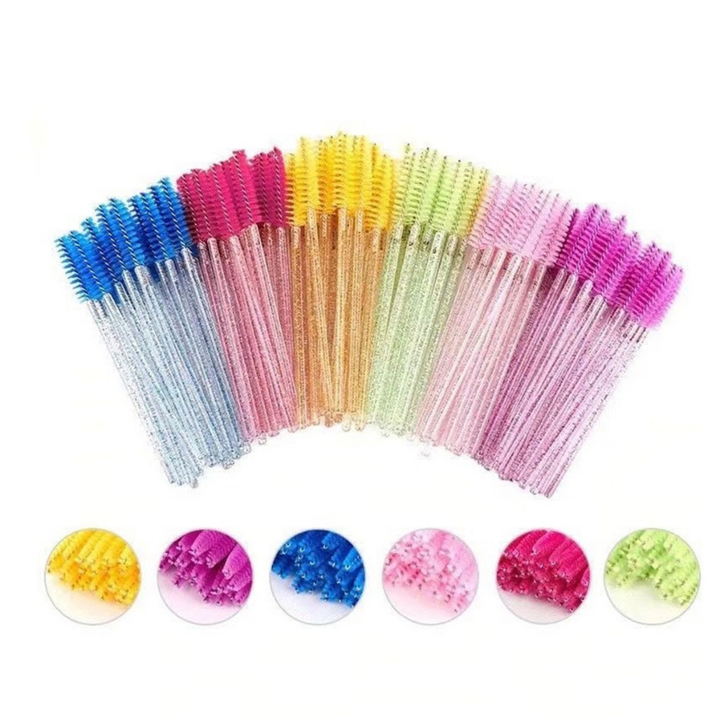 Kit C/50 Escovinhas Glitter Extensão De Cílios Sobrancelha Brilho Cores Sortida