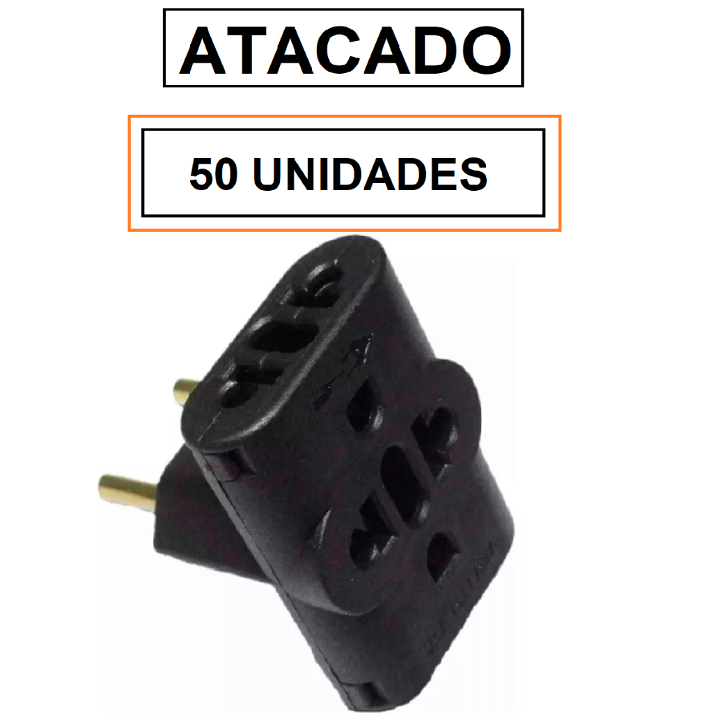 Kit C/50 unidades Adaptador Preto Tomada D Multiuso Plug Elétrico 10ah Benjamin