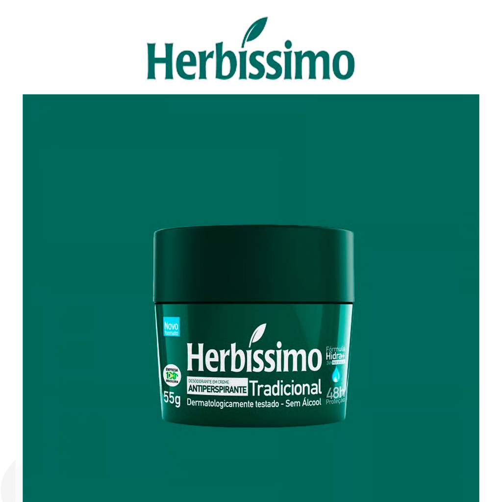 Kit 6 Antitranspirante Creme Herbíssimo com Glicerina – 48h Proteção 55g O Herbíssimo Creme Antitranspirante oferece até 48 horas de proteção eficaz contra suor e odores, garantindo segurança, frescor e bem-estar durante todo o dia. Sua fórmula cremosa com glicerina hidratante mantém a pele das axilas macia, sem ressecar e com rápida absorção. Ideal para quem busca proteção prolongada e cuidado diário, sem abrir mão do conforto. ✅ 48h de proteção contra suor e odores ✅ Contém glicerina que hidrata e protege a pele ✅ Fácil de aplicar e absorção rápida ✅ Dermatologicamente testado ✅ Formato econômico – Kit com 6 unidades (55g cada) Variações disponíveis (Kits com 6 unidades): Kit C/6 Lavanda – Fragrância suave e relaxante Kit C/6 Tradicional – O clássico do cuidado diário Kit C/6 Talco – Sensação suave e refrescante Kit C/6 Action – Proteção intensa para rotinas agitadas Kit C/6 Vanilla – Aroma adocicado e marcante Kit C/6 Fresh – Frescor prolongado e agradável Kit C/6 Neutro – Sem fragrância, ideal para peles sensíveis Kit C/6 Sensitive – Fórmula suave, perfeita para peles delicadas Kit C/6 BioProtect Cedro – Toque amadeirado com proteção equilibrada Kit C/6 BioProtect Hibisco – Fragrância floral suave e refrescante