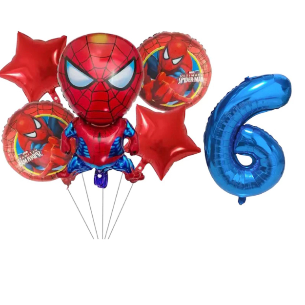 Kit C/6 Balões Metalizado Homem Aranha+Número 40Cm Decoração Festas Envio Imediato