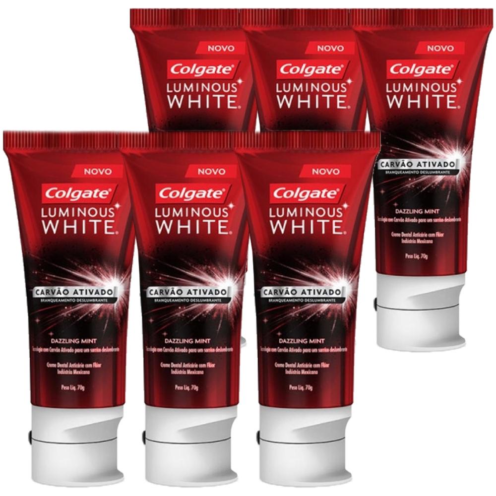 Kit C/ 6 Cremes Dental Colgate Luminous White Carvão Ativado 70g