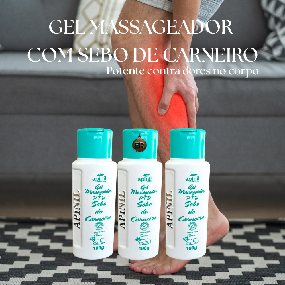 Kit c/6 Gel Massageador PTD com Sebo de Carneiro Sarador Apinil 200g