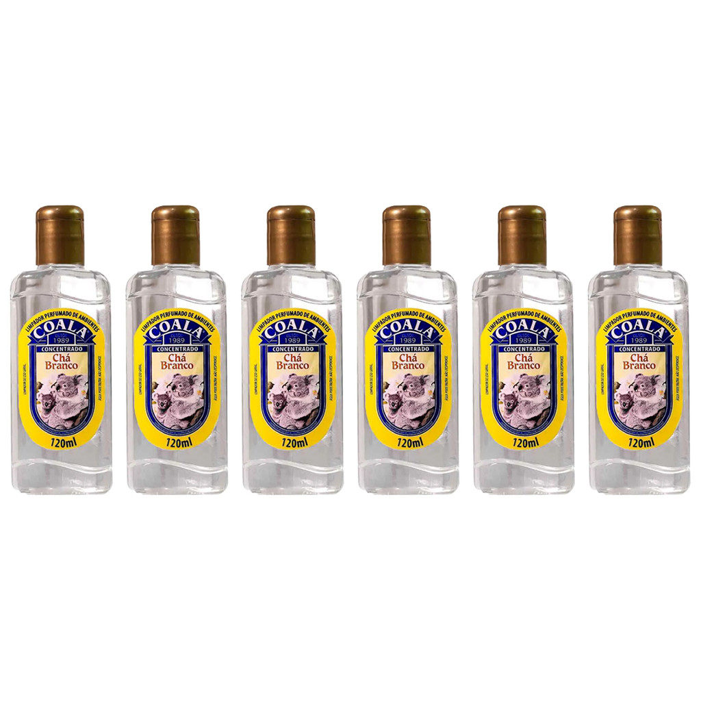 ESSE KIT CONTÉM: 6 LIMPADOR PERFUMADO COALA CHÁ BRANCO CONCENTRADO 120ML Seu ambiente vai ficar limpo e com um aroma incrível. Além de poder ser usada em todos os ambientes, o Limpador Perfumado de Ambientes Chá Branco também: - Garante a sensação prolongada de limpeza e bem-estar; - Tem perfume duradouro, - Fragrância agradável. Modo de usar Diluir 8 gotas do Limpador perfumado de ambientes em 1 litro de água e com o pano úmido passar sobre a superfície desejada.