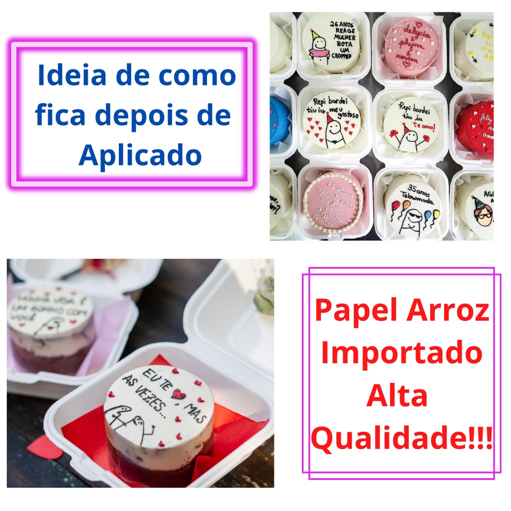 | Kit C/6 Papel Arroz Bento Cake Flork Frases Aniversário 9cm cada este produto | R$ 13,49 | — | 4.9/5 | 16 |