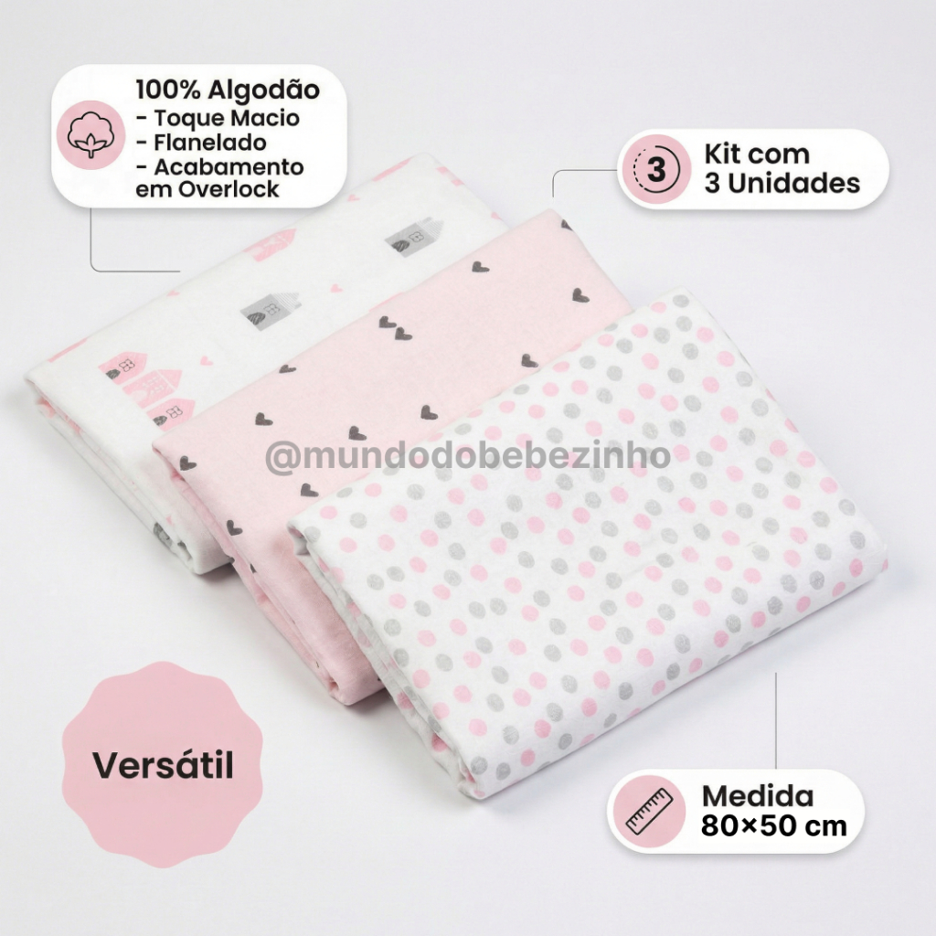 Olá, Mamães e Papais! Acreditamos que o momento da maternidade é um dos mais importantes na vida de uma mulher, por isso nós da Mundo do Bebezinho nos preocupamos em cada detalhe com muito amor e carinho. Trazemos para você os cueiros da linha Compose da Papi que são itens indispensáveis no dia a dia, confeccionado em tecido flanelado dos dois lados 100% algodão leve e macio, estampas delicadas e divertidas. Os cueiros são práticos e possuem multi funções como enrolar o bebê em forma de charutinho para ajudar acalmá-lo e sentir-se seguro, forrar o local para o bebê deitar, usar como mantinha entre outras funcionalidades. Descrição do Produto: Medidas: 80x50cm Tecido:100% algodão Contém: 03 unidades na embalagem. Acabamento: Overlock Marca: Papi O KIT É COMPOSTO POR 6 UNIDADES DE CUEIROS. A ESTAMPA É EXATAMENTE A DA IMAGEM. ENVIO IMEDIATO!!! ESTAMOS AGUARDANDO COM CARINHO PELO SEU PEDIDO!!! ❤️