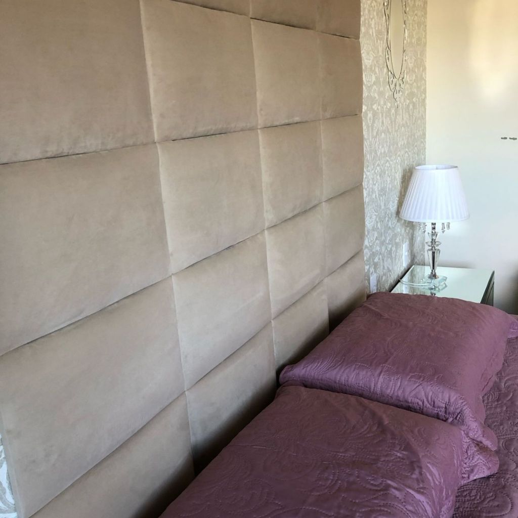 Kit Cabeceira Cama Box Tecido Boucle Placa 40x30cm Estofada Solteiro Casal Queen King