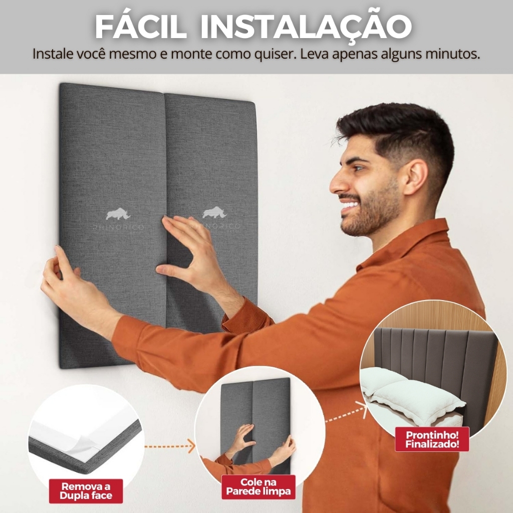 Kit Cabeceira de Cama Alta 120x20cm Modulada Facto Premium Casal Queen King Estofada Confortável ✅Sobre o produto: ✔ Tamanho: 120 cm x 20 cm x 2,5 cm ✔ Material da estrutura: mdf ✔ Revestimento: facto premium exclusivo antimofo ✔ Conforto: espuma de alta densidade específica para cabeceiras ✔ Fixação: fita dupla face ultra resistente ✅Diferencial do nosso produto: ✔ Alta resistência ✔ Imagens reais do produto ✔ Produto com nota fiscal ✔ Design moderno e sofisticado, perfeita para quartos e canto alemão, nossa cabeceira valoriza o ambiente com um toque de requinte ✔ Conforto absoluto, espuma especial para cabeceiras, revestida em suede premium antimofo, com toque macio e durabilidade garantida ✔ Fácil instalação, fixação rápida com fita dupla face de alta aderência! Não tem sujeira e nem complicação ✔ Versatilidade, monte do seu jeito ✅Como Instalar: ✔ Certifique-se que a parede está lisa, limpa e seca ✔ Planeje o alinhamento com linhas guias para um visual perfeito ✔ Retire a proteção da fita adesiva e pressione cada módulo firmemente no local desejado ✅Escolha a quantidade de módulos ideal para a sua cama: ✔ Kit 4 módulos ✔ Kit 5 módulos ✔ Kit 7 módulos ✔ Kit 8 módulos ✔ Kit 10 módulos ✔ Kit 12 módulos ✔ Kit 14 módulos ⚠️ Não recomendamos instalação em paredes com texturas 🚚 Envio Super Rápido 🥰 Para dúvidas, estamos à disposição no chat