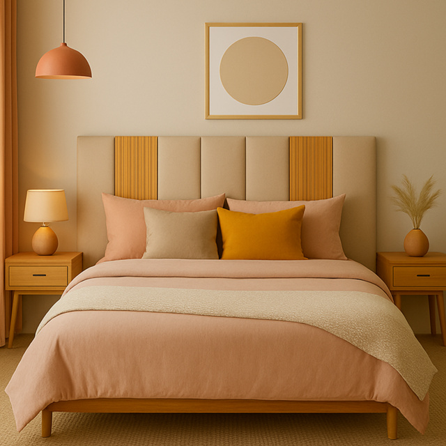 Kit Cabeceira Estofada + Ripado Modular Freijó - Todos os Tamanhos