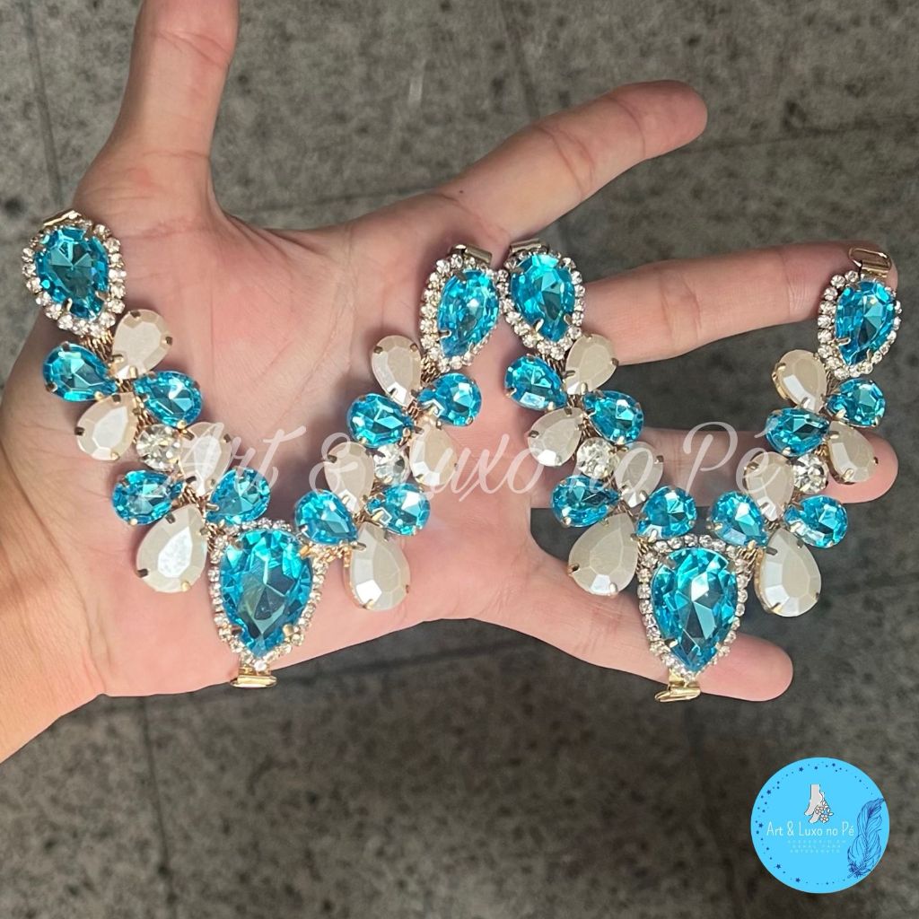 Kit Cabedal Borboleta 02 Azul Claro Sem Pino Para Chinelos