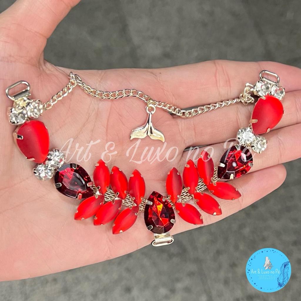Kit Cabedal Sereia Vermelho Fosco Sem Pino Para Chinelos