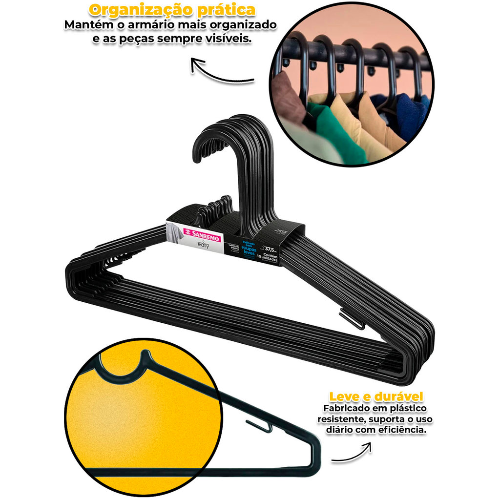 Kit Cabide Adulto 10 Pçs Sanremo Organização Camisas Blusas Guarda Roupas