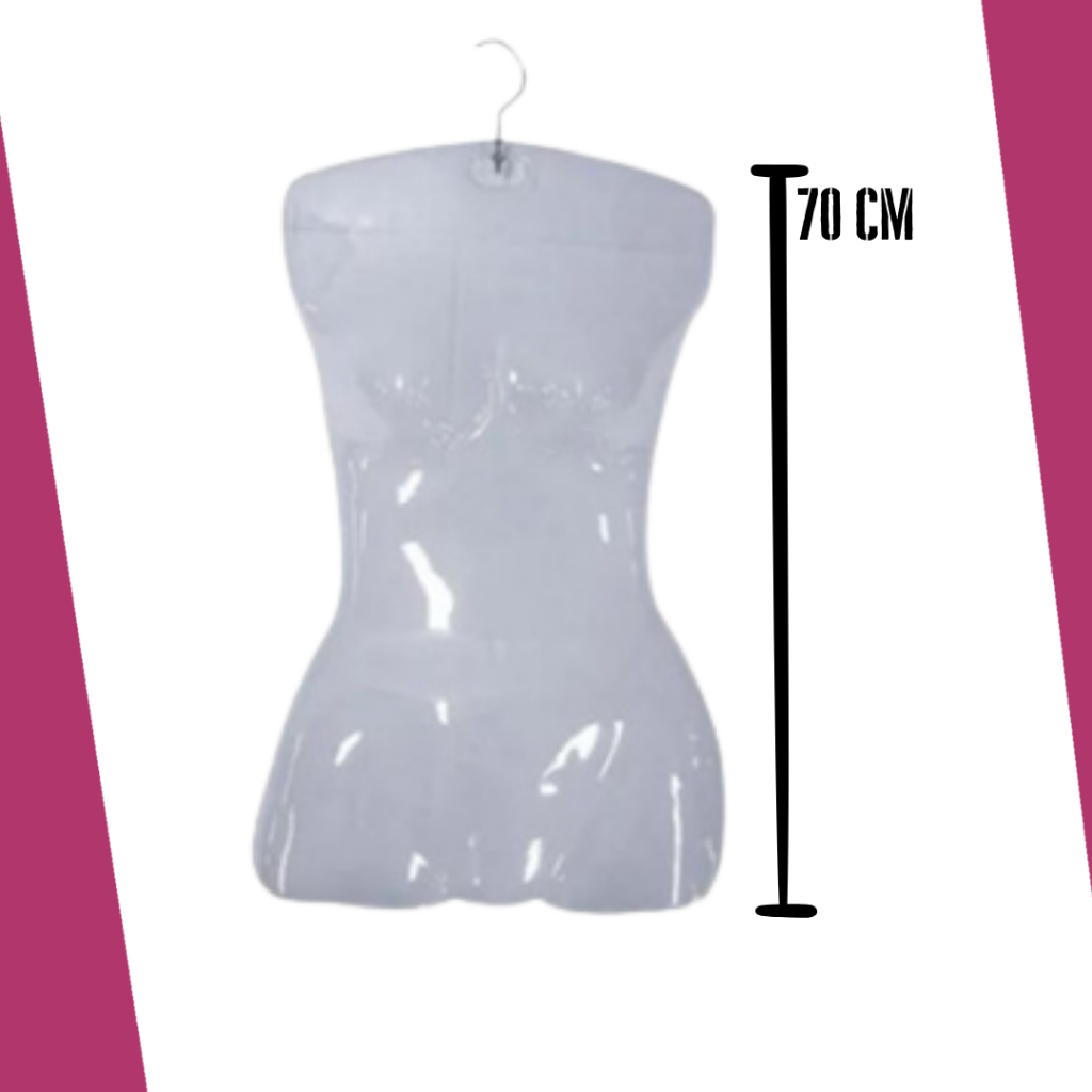 Kit Cabide Busto Collant Manequim Transparente com Gancho Metal 5 Unidades