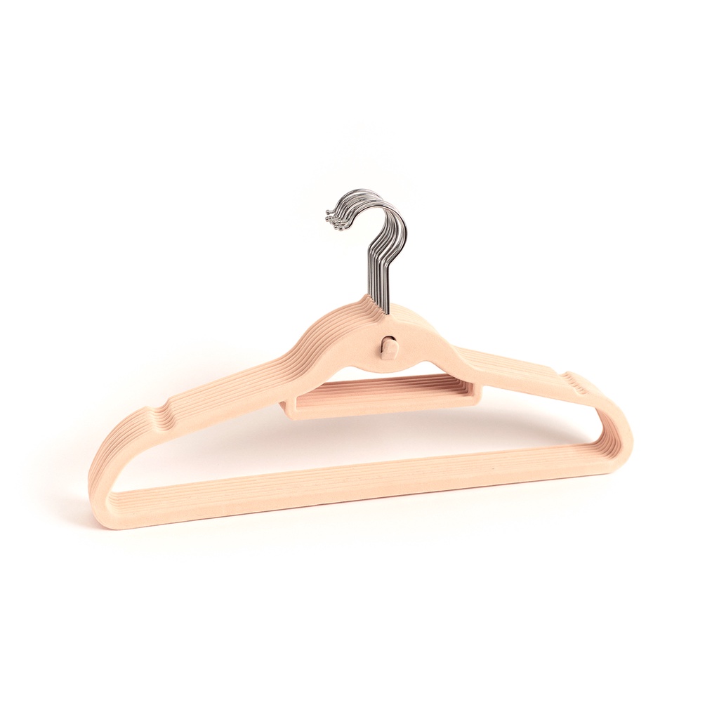 Kit Cabide De Veludo Bege Com Gancho Oikos - 60 Unidades