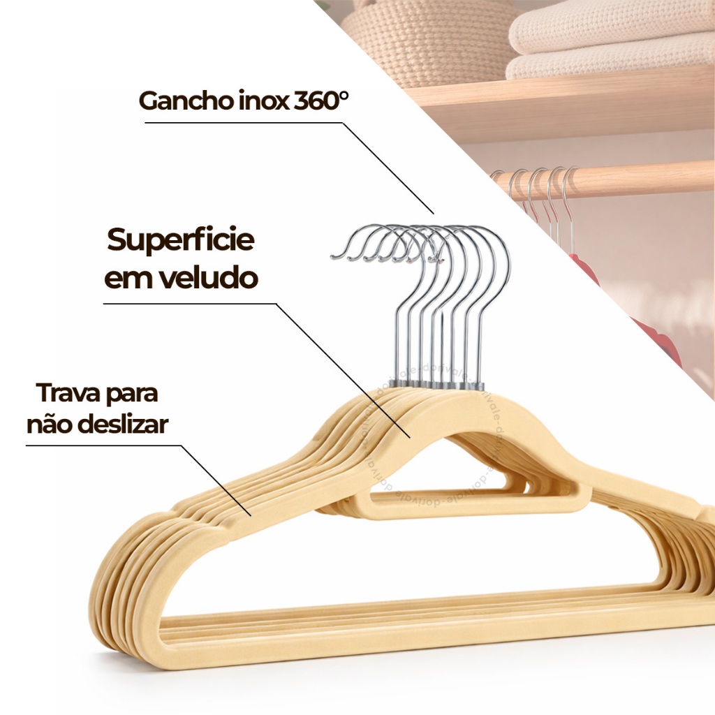 | Kit Cabides Veludo Slim Finos Adulto Antideslizante Gancho Giratóri... este produto | R$ 34,90 | 29% | 5.0/5 | 2 |